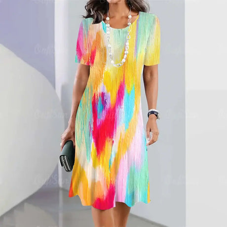 Striped Printed Elegant Casual Short Sleeve Dresses