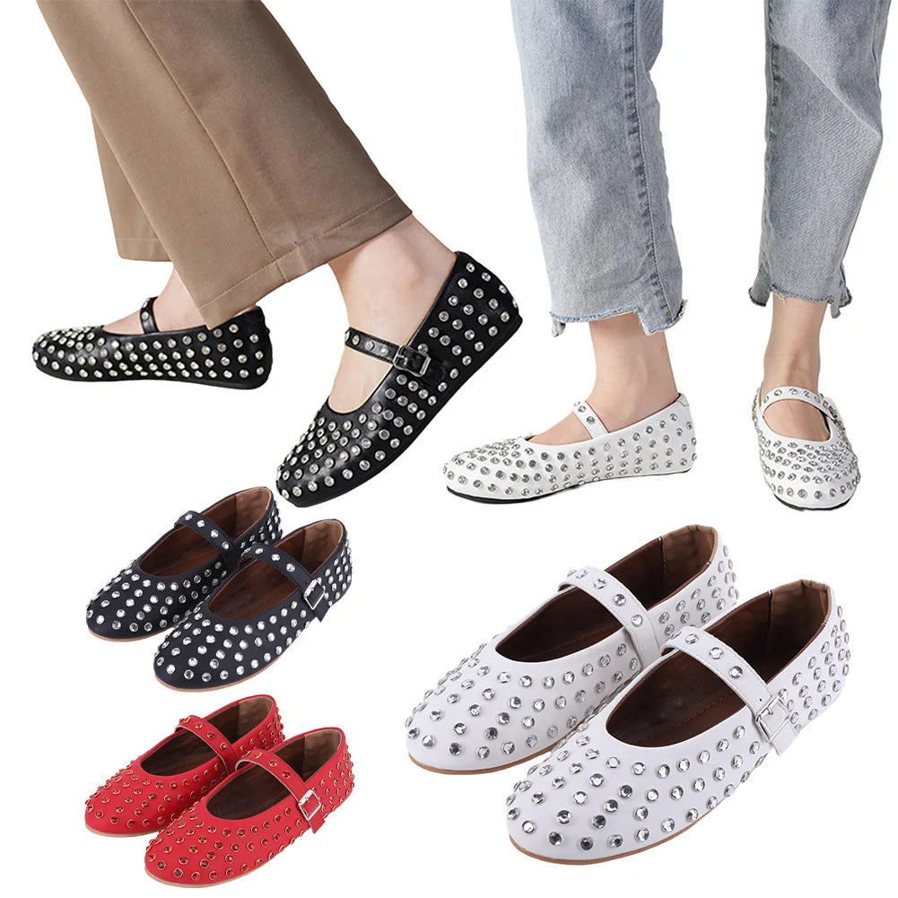 Women Crystal Ballerina Shoes Rhinestone Flats