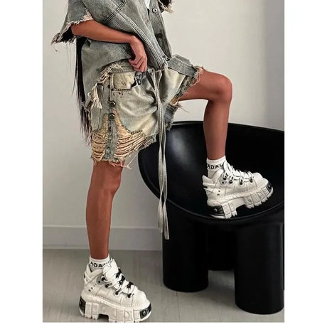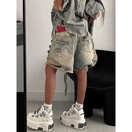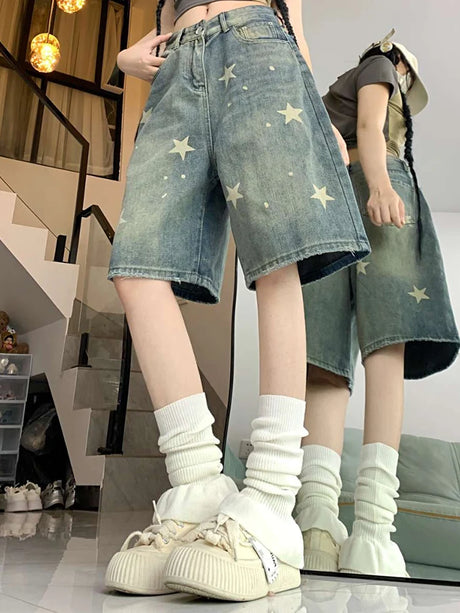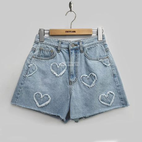 HeartJorts™ – Y2K High Waist Jorts (LOVE Heart Pattern, Chic & Washed)