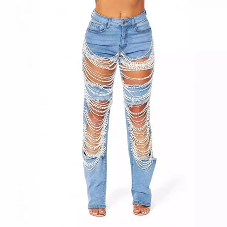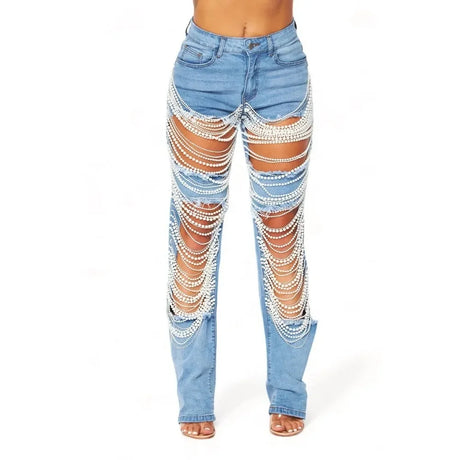 ChainTear™ – Bead Chain Ripped Slim Denim Pants 2025 (Grungy, Sleek & Decorative)