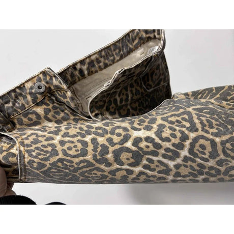 WildFur™ – Leopard Print High Waist Denim Trousers (Statement, Fierce & Urban)