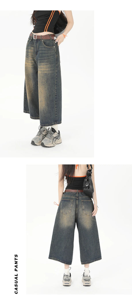 WashedMuse™ – Retro Wide Leg High Waist Denim Pants (Faded, Chic & Casual)