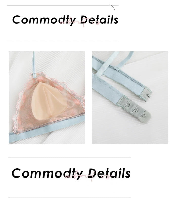 Women French Bralette Set - Blue / L 80A 80B 80C is backordered and will ship as soon as it is back in stock.