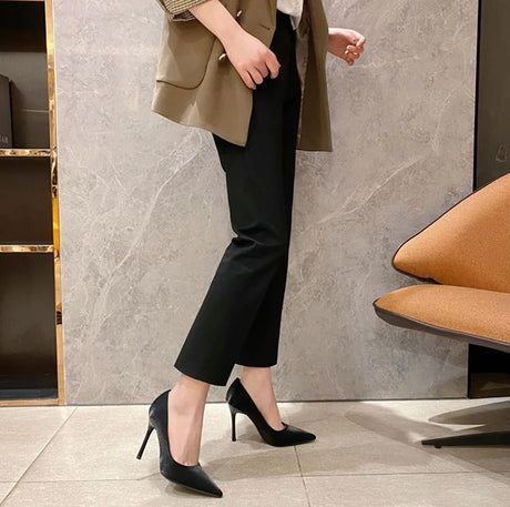 Classic Pointed Wedge Pumps – Black Faux Suede 2025