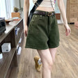 Women's Baggy Denim Short Jeans - Green (No Belt) / L is backordered and will ship as soon as it is back in stock.