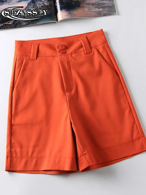 Women's High Waist Linen Shorts - Orange / M is backordered and will ship as soon as it is back in stock.