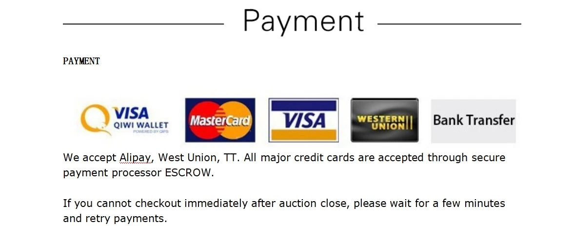 • We accept secure payments via major credit/debit cards, PayPal, and other trusted providers.