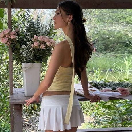 Plaid Bow Backless Y2K Crop Top Streetwear