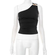 One-Shoulder Beaded Ruched Tank Top