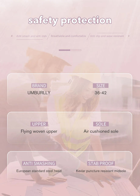 Women Safety Shoes Anti Smash Protective Sneakers
