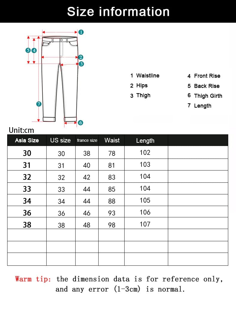 size_info: {"sizeInfoList":[{"length":{"cm":"78","inch":"30.71"},"size":"30 55-60kg","vid":-1},{"length":{"cm":"81","inch":"31.89"},"size":"31 60-65kg","vid":-2},{"length":{"cm":"83","inch":"32.68"},"size":"32 65-70KG","vid":-3},{"length":{"cm":"85","inch":"33.46"},"size":"33 70-75kg","vid":-4},{"length":{"cm":"88","inch":"34.65"},"size":"34 75-80KG","vid":-5},{"length":{"cm":"93","inch":"36.61"},"size":"36 85-90kg","vid":-6},{"length":{"cm":"98","inch":"38.58"},"size":"38 90-95KG","vid":-7}]}