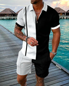 Style 21: Summer Zip Short Sleeve Polo Shirts Shorts Men's Sets