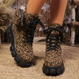 Women Leopard Print Ankle Boots – Winter High Heel Platform Shoes