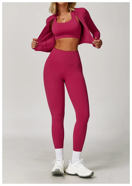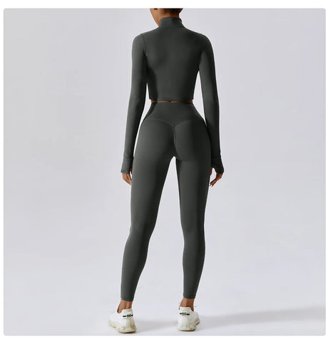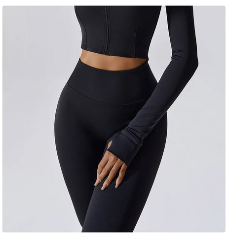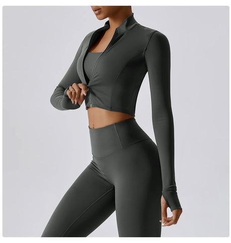 Women's Zip Long Sleeve Yoga Jacket – Gym Push-Up Sportswear Top