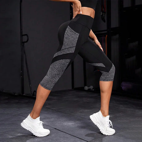 Colorblocked Capri Women's Yoga Leggings – High Waist Workout Pants with Pockets