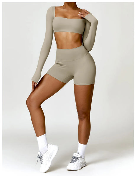 Women's Seamless Long Sleeve Yoga Crop Top – Quick-Dry Square Neck Gym Shirt