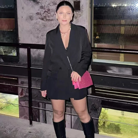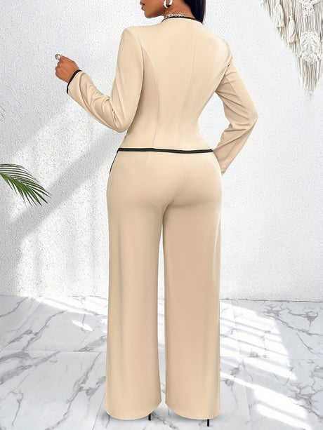 AsymLuxe™ – Blazer Pantsuit Set (Asym Hem, Deep V-Neck, Elegant All-Day Wear)