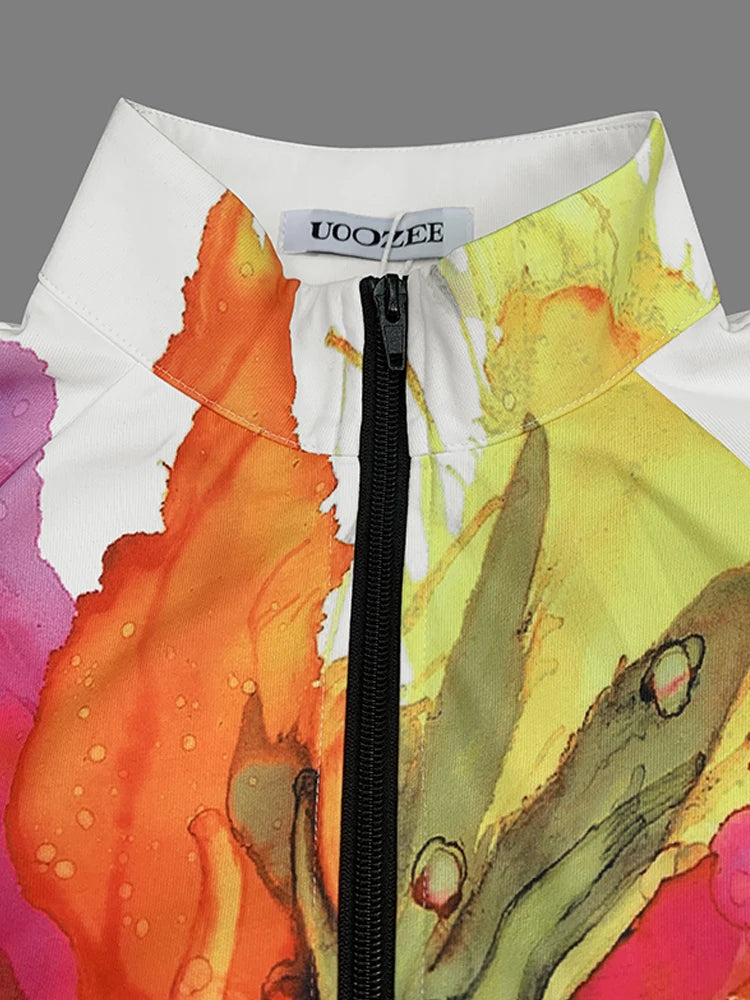 Floral High Neck Puff Sleeve Jacket