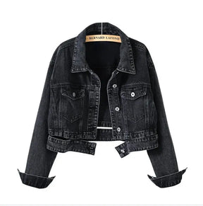 Women's Long Sleeve Denim Lapel Jacket - Black / S is backordered and will ship as soon as it is back in stock.