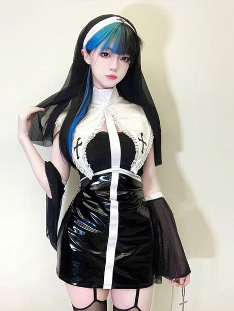 Sexy Anime Nun Leather Cosplay Outfit