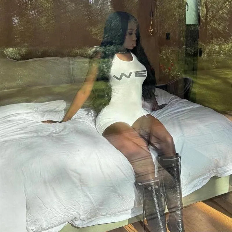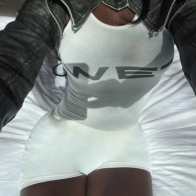 SportMuse™ – Letter Print Slim Sport Romper (Dynamic, Casual & Stretchy)
